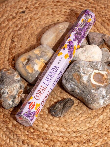 A HEM Copal Lavender / HEM Copál Levendulás indiaivfüstölő egy ősi indiai hagyományokból eredő, természetes összetevőkből készült illatos pálcika. A copál és a levendula kombinációja révén tisztító, nyugtató és energetizáló hatással van. A füstölő segít a meditációban, a stresszoldásban, az alvás minőségének javításában, valamint a negatív energiák elűzésében.